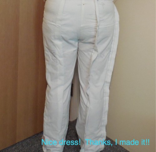 Well done for doing this by yourself. It is really hard to get well fitting pants with another person’s help, but to do it alone is a feat. Great idea to take photos at each step.