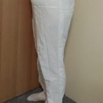 Vogue V2948 is a great pattern for making alterations as it is a princess seam pant and has 4 seams per leg to give more options for adjustment.  I sewed my muslin pant legs together so quickly, I mistakenly made TWO legs exactly the same – Heck with it, I turned one leg out and sewed them together at the crotch, with the one leg showing the seam allowances!