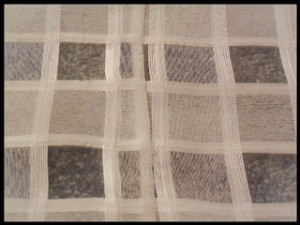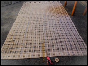 This will not do at all! The factory, or wherever curtains are made, doesn’t really pay much attention to how they line up their seams or their vertical and horizontal rows. I followed their seam when I attached the half panel and I look what I ended up with! This fabric wasn’t very conducive to being picked apart but I did it anyway. The fabric did fray a lot, so once I got it apart I carefully cut and positioned my seams and my vertical and horizontal rows on both curtain panels and sewed them together with French Seams. Much better!