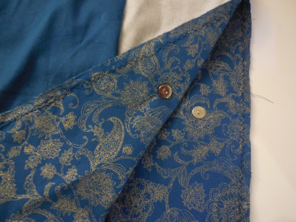 Next, attaching the magnetic snap to the inner lining. ย Now one hint. ย It is suggested by the manufacturer to put a small circle of cardboard on the prong side of the magnetic snap. ย Mrs. H suggests using a small circle of interfacing. ย I used the cardboard, but after thinking about it, next time I will cut a small circle of thin plastic from the recyclable milk jugs we have. ย Then there won’t be any cardboard to fall apart in the wash!