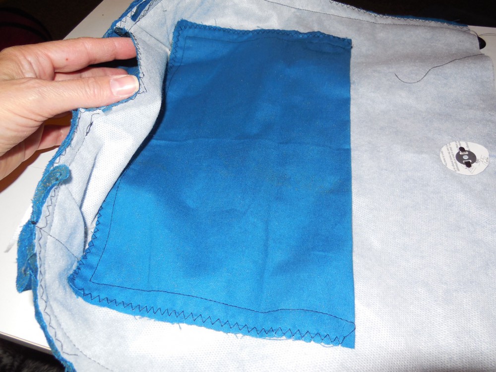 Now this is better explained by Mrs. H with her instructions and photos, but you sew the two inner lining pieces together on the three sides BUT leave an opening at the bottom (a turning gap).