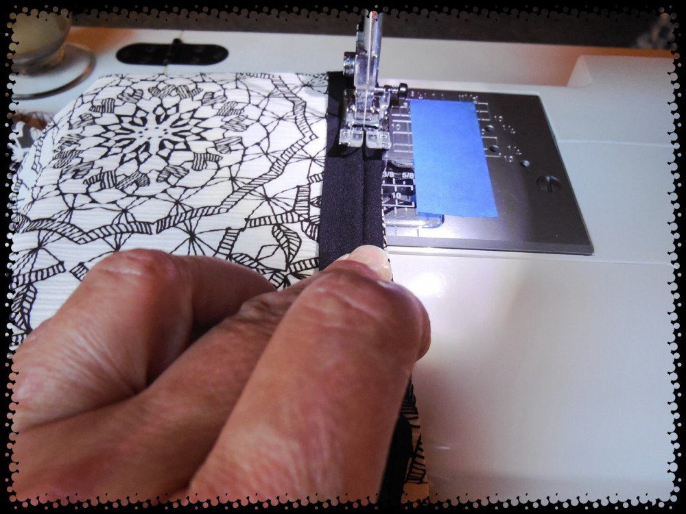 Then hemming of the sleeves and bottom edge. ย I used single fold bias tape for this light fabric to try to give it some stiffness.