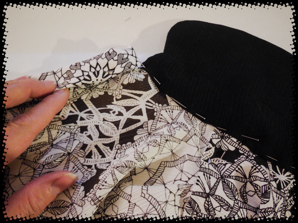 I didn’t have too much problem putting together the collar and the collar band. ย You sew the finished collar between the right sides of the two collar bands. ย Then sew one collar band to the neck edge.