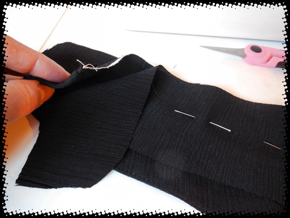 Then sew the sides of the collar bands together being careful not to sew your collar into it. ย I don’t know if everyone does it this way, but I find it easier doing it in steps like this.