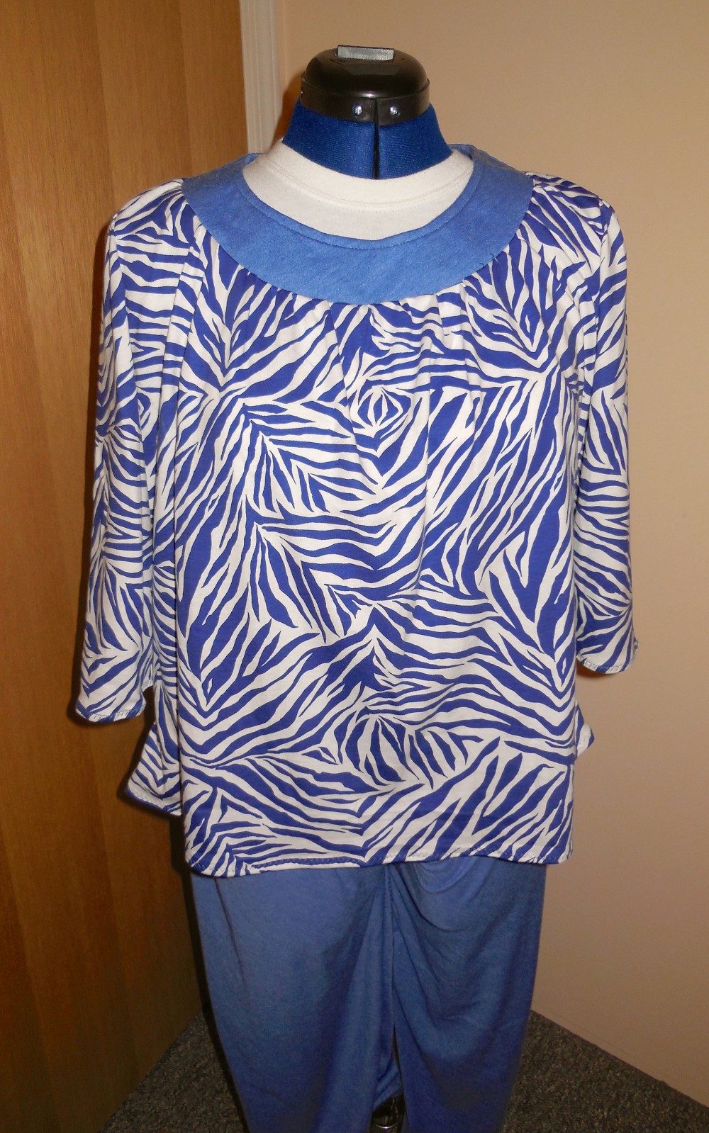 I do like how the PJ tops drape and they will be warm and cozy for the winter, but the PJ bottoms are too light and tend to bunch up here and there, even on one-legged Dolly. ย I would like to say stay away from that fabric in the future, but I think it was the “unknown fibres” one, so all I can say is next time I’ll make sure I have a comfortable drape on all my fabrics. ย The PJ bottoms will be a re-do with another blue lightweight knit that I have in my stash. ย This pattern is so easy to do that I should have the new bottoms ready soon.