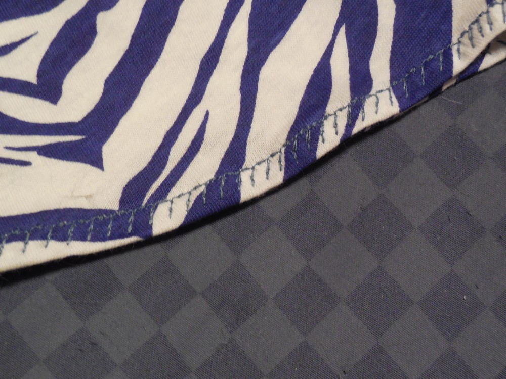 I decided to play around with some of the stitches available on my sewing machine. ย Amazing how they are there, at least 60 stitch options (not an outrageous number), and yet in my three years of sewing with this Janome machine I have yet to say that I have tried them all. ย I did try this knit stitch. ย It worked very well on both top fabrics, although they are not really stretchy this stitch did make a pretty hem.