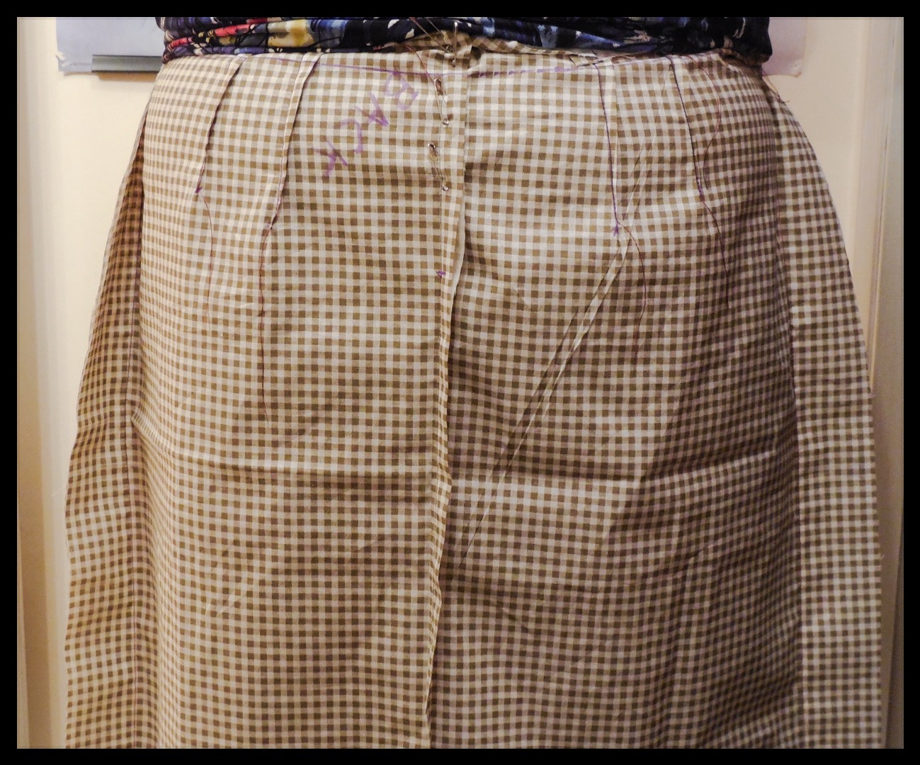 and the back … ย When I do my Pants Fitting Shell, I am going to put in a zipper. ย It was very difficult to pin up the opening in the back of this Skirt and all those pins just puckered the back!