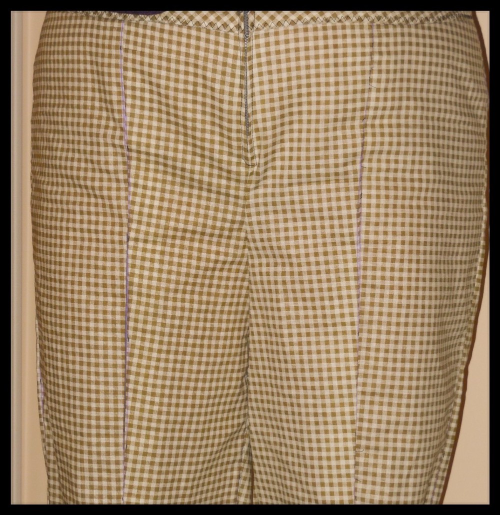 I used my cotton gingham fabric again, although it was a bit stiff to be used as pants material. ย I hope to make any other pants usingย this technique/pattern withย a fabric that has a better drape.