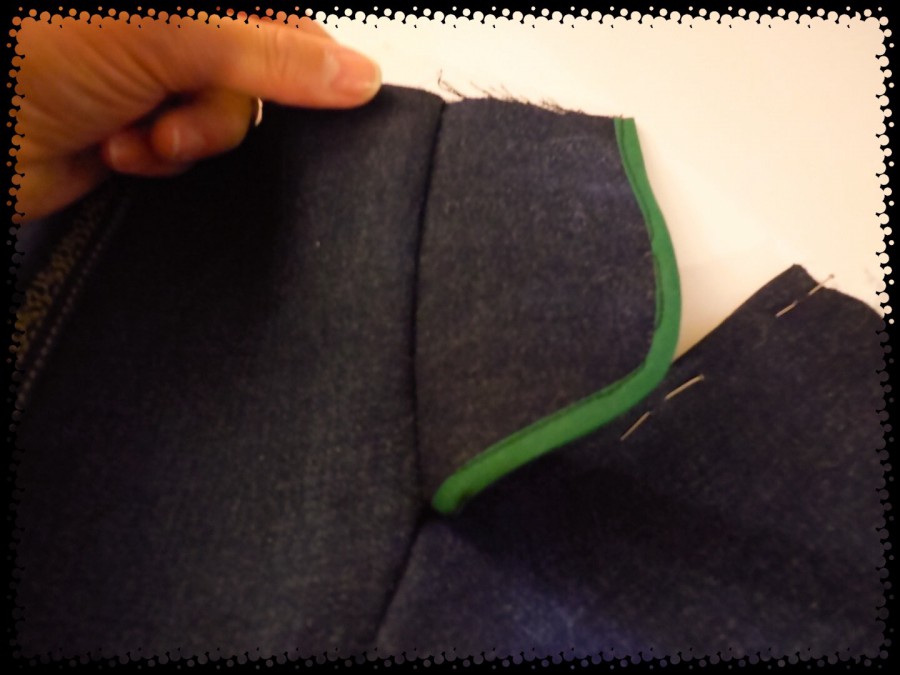My single layer fly piece is sewn on the right side of the pants opening and folded under, pinned and pressed.