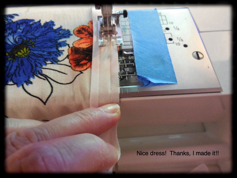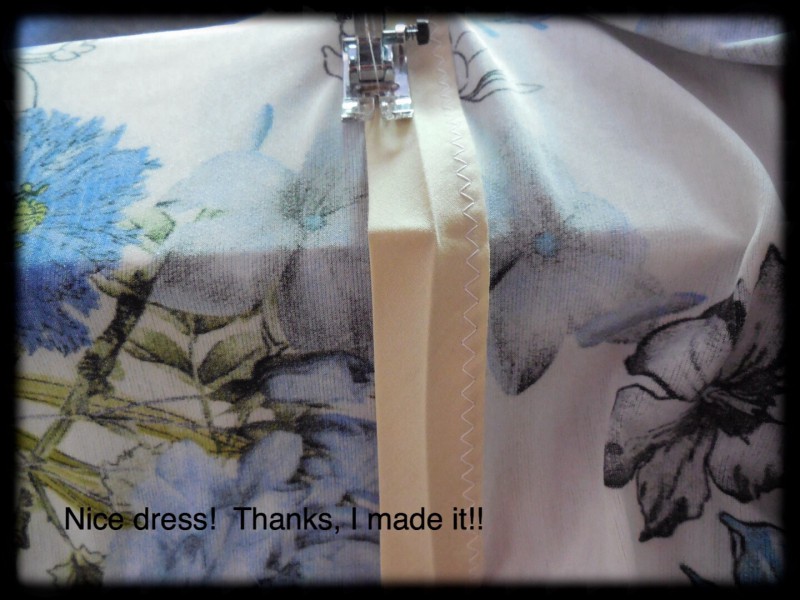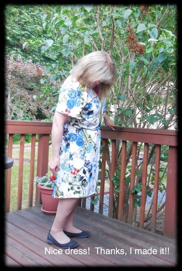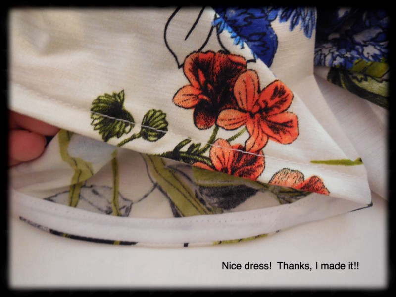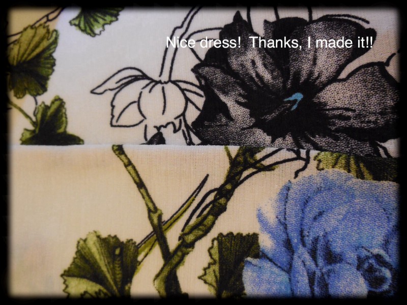 I fell in love with this fabric because of the flowery print. ย With some help and much practice and perseverance, I have a lovely dress. ย Unfortunately, I am still sitting on the fence about it – itย feels like I am wearing a really light long tee shirt. ย I was just talking to Sewing with Scooby Snacks about choosing the right fabric for a project. ย I’m not sure I did with this one. ย What do you think? ย Do you have a summer dress that feels like tee shirt material?