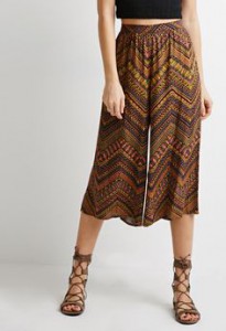 Now ditch those dumb gladiator sandals. I know I am not a “Forever 21” model (even when I was 21, I was not Forever 21 – and that has been perfectly fine with me), but this made me think of my own pair of culottes for the summer, worn with a solid coloured top? (no belly showing though!) My fabric is light so wearing something pant-like wouldn’t be a problem. The Forever 21 chevron print is even bigger than mine, but not as bright as mine. But I just don’t know: