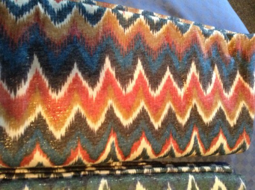 It is a big print. If you look at this photo, the chevron stripe is about 2″ from tip to tip and about 3″ tall. My fabrics are light and summery, but the print might be too much?