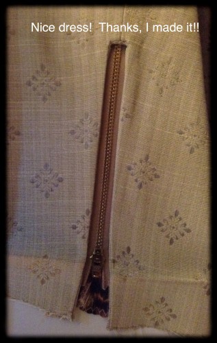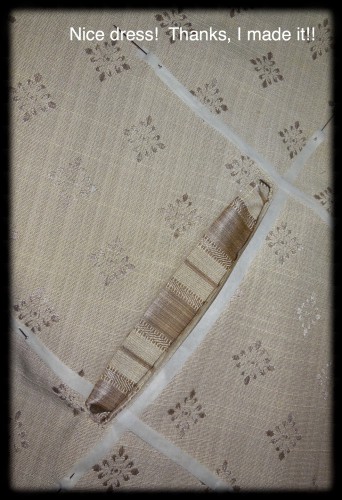 This one is a vintage pattern from 1978, Simplicity 8510. ย It must be a favourite of my sister’sย for her to keep it safe all this time. ย The fabric is a similar beige as in the pattern photo, linen-like, 70% polyester, 30% rayon. ย (It is deceiving sitting on my bedspread so ignore the pink flowered fabric!)