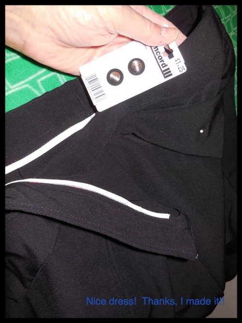 In addition to having a lovely pair of black pants to wear now, I also have a NEW TOY! When pressing, I seem to have a penchant for scorching and burning my fabric and covering my iron with interfacing goo. So I bought and used happily – until it turned brown and shapeless – a Silk Organza Press Cloth. Then I saw this. A NEW TOY! A Teflon Iron Shoe. So far, so good! No scorching, burning, or sticking goo to my iron. If you are looking for one I have seen them for as low as $10.00.