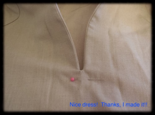 When it comes to these types of collars/necklines, I prefer to not make a “pointy” slit, but a rounded one. ย I find it is easier to turn and press when it is rounded.