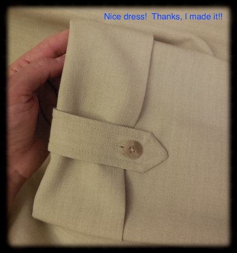 I am also planning on making sleeves for this dress like I did with My Sister’s Sewing Projects – Simplicity dress, like this. ย So I want to topstitch the button tab too. ย I think I will also top stitch the tie belt.
