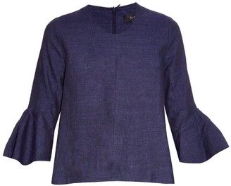 I’m using McCall’s M6896, view E. ย I adjusted the pattern a few weeks ago to make the sleeves bell-shaped. ย Now after finishing most of the sewing, I have decided, Yes, I do want the small slit in the front that is part of view E. ย Copying the Ellery Neu top exactly made me feel strangled byย the high neckline.