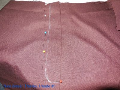 The wrong side of the right and left fronts. One thing the pattern instructions suggested was interfacing the fly flaps, which I did. Unfortunately I didn’t know what their reasoning was so I applied too much interfacing, which I peeled off carefully after I realized my error.