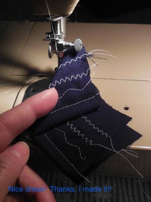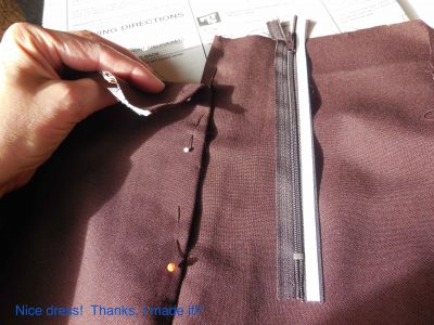 When it came time for sewing in the zipper, I dug in the box of accessories that came with Amber and attached the zipper foot. It was funny when I realized that there were two zipper feet in the box and this one was too short for this machine!