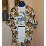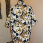 My sewing days are running out. ย Soon my sister and I leave for Mexico. ย As usual, I have a dozen ideas but only so much time – so at the top of the list, besides swimsuits,ย isย cover ups. ย I bought the fabric for two cover ups – one for my sister and one for me – last weekend. ย My sister chose this print – full of black, brown and gold colours. ย It’s called Tangiers Linen-look print, 97% polyester and 3% spandex. ย It definitely has the quality of linen. ย When I pre-washed bothย fabrics, this one lost at least a 1/4″ off the width with the unravelling and fraying. ย I decided that I would have to be very careful finishing off the seams.