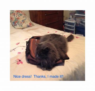 Yes, “Nice dress! Thanks, I made it!!” and Jerry the Minion are off on another adventure! This time visiting another sister, susanonthesoapbox, and the Calgary Stampede, among other things. Now susanonthesoapbox won’t allow me to bring my sewing machine along, not even my petit Featherweight, or if it’s not her, then it’s the airline? I dunno. I’m not quite sure who is the greater power between the two … so as a result, there will be no sewing here for two weeks. ☹️ BUT! Yes I say BUT! If I do see something sewing related in my travels, I will share it with you – like last time I went to Calgary and saw THE Biggest Sewing Room in Canada!