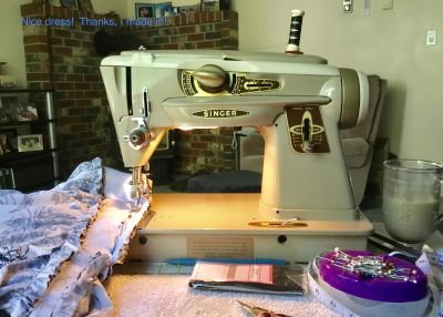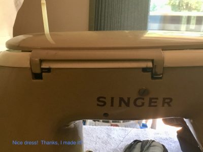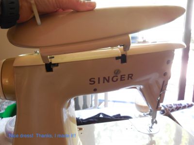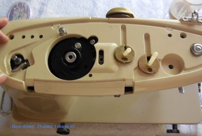 Barbie is still happily sewing away. I have yet to fix the broken pin holding on the side nose door, but it doesn’t interfere with Barbie’s use. I remember Clemence has the same broken pin on her machine. If you are reading this Clemence, or anyone else who needs to know, the post to repair the broken nose door pin is right here. More kindness of strangers!