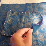 Now the magic moment – right sides together, outer bag inside the bag lining and I sew around the mouth of the bags, making sure the strap and zipper are not caught up in my sewing.