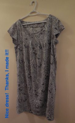 Finished dress – no I’m not wearing it yet. I want side by side shots of my “Day” dress and my “Night” dress – so you’ll have to wait until my Night dress is finished too … next post!