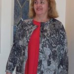 I love this knit fabric, a “shades of grey” (and black) paisley Topaz knit, 85% polyester, 10% rayon, 5% spandex. Others seem to like it too! I have two co-workers who have RTW cardigans in variations of grey paisley knit – that’s why I knew I had to have one too!