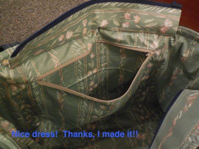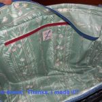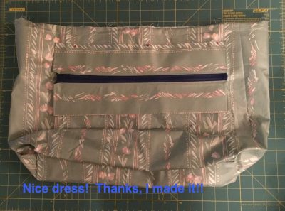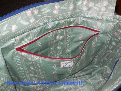 Adding a layer of Pelton Peltex – a FIRM fusible stabilizer – and a layer of Pelton Fusible Fleece – medium weight fleece. LESSON LEARNED #1: Do not cut the Peltex right to the edge of the fabric or you will suffer dearly trying to sew your seams up! LESSON LEARNED #2: Peltex is FIRM! I read “somewhere” that the Peltex would keep your bag firm and a layer of Fusible Fleece would give your bag a cushioned look. I used both and all I ended up with is a FIRM bag, which isn’t bad, but what was the point of the Fusible Fleece then? Another suggestion is to fuse the Peltex to the lining layer and the Fusible Fleece to the outer layer for a firm, but cushioned bag – haven’t tried that yet!