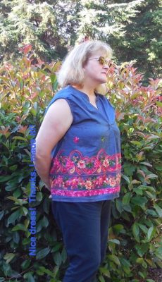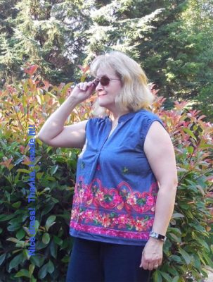 I do like this pattern. It’s simple and my style. Next time though I will pay more attention to the sizing and ease! Still I love it – border print! 🙂