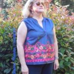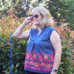 STASH BUSTING WITH THIS PROJECT? Nothing! I purchased 3 metres of this border print fabric adding to the stash. I did make a pair of cropped pants (1.6 m) and this top (1.4 m), so I used it all up! There is still 130.2 metres left in the fabric stash!