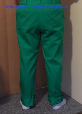 Approximately 100 fittings later – which meant trying them on, taking photos from all angles, examining the photos, picking the seams out, sewing them up again, and doing it all over and over again —