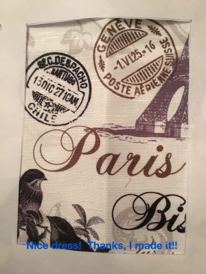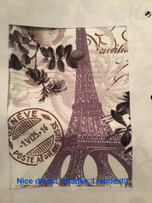 I have a 2 meter piece of fabric with a large Parisienne print so I isolated different scenes of the large print and let my sister decide which scene she wanted to use for her Rosie© bag …