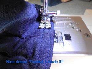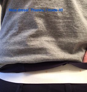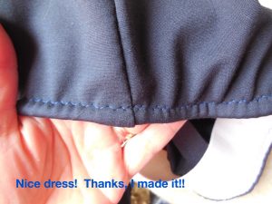 I had two meters of the BEST fabric. I should have taken a photo of the bolt end so I could remember it’s content. I remember it had a spandex content though with a good four way stretch, as recommended by Tuesday Stitches, and it was quite thick compared to some of the stretch knit fabrics I see. I chose to do view C without the gathers, so that I could squeeze TWO pairs on to my fabric, so it was easy to sew all the seams – skipping the gathers. Maybe I’ll make a pair with gathers, view A or B, next time. I used a narrow long zig zag stitch and didn’t have much of a problem except for when I sewed through a couple of thicknesses for the hems.