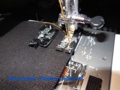 I have a lot of golden topstitching thread in my stash, but it wouldn’t match the topstitching thread I used for my jacket. so a trip to the fabric store was in order and I came home with some “future handbag” fabric and two spools of white topstitching thread. I also bought another package of “Jeans” sewing machine needles.