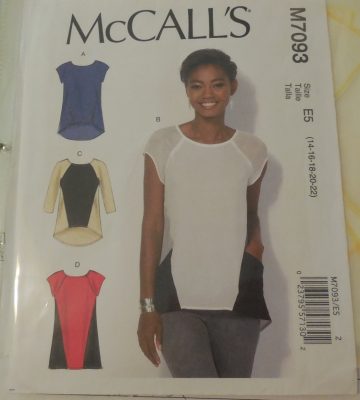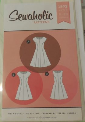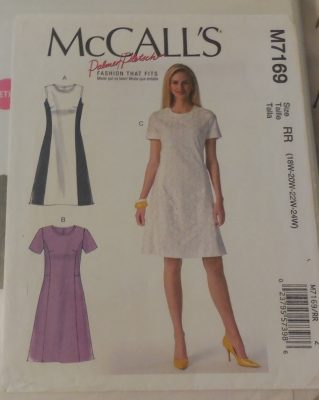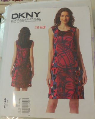 I do have a few patterns that are similar. The DKNY does’t have the flare on the bottom of the dress, The Sewaholic has a centre front seam, but the McCall’s one looks pretty close. The McCall’s pattern for the top looks pretty good too! I have to find other versions of my “Designer Original” to see if the centre print travels down in a straight line, or flares in or out. I’ll also have to find a photo of the back of the dress, although I’m hoping I can have the print in the front and the back of the dress!