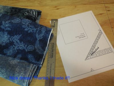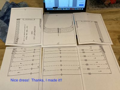 As you can see it was a PDF sewing pattern. Since I only needed the pieces for the top though, I didn’t have to print off as much paper as required for the dress. Here’s the yoke piece to be put on the fold of the fabric.