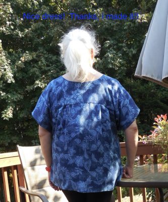 It was a sunny, but windy, day. I managed to get photos of my new summer top. I think the trick to this pattern is really lightweight fabric, like this cotton, because of the way the sleeves are attached to the square yoke and the numerous pleats in the front and the back. It makes for a lot of lovely fabric billowing around you!