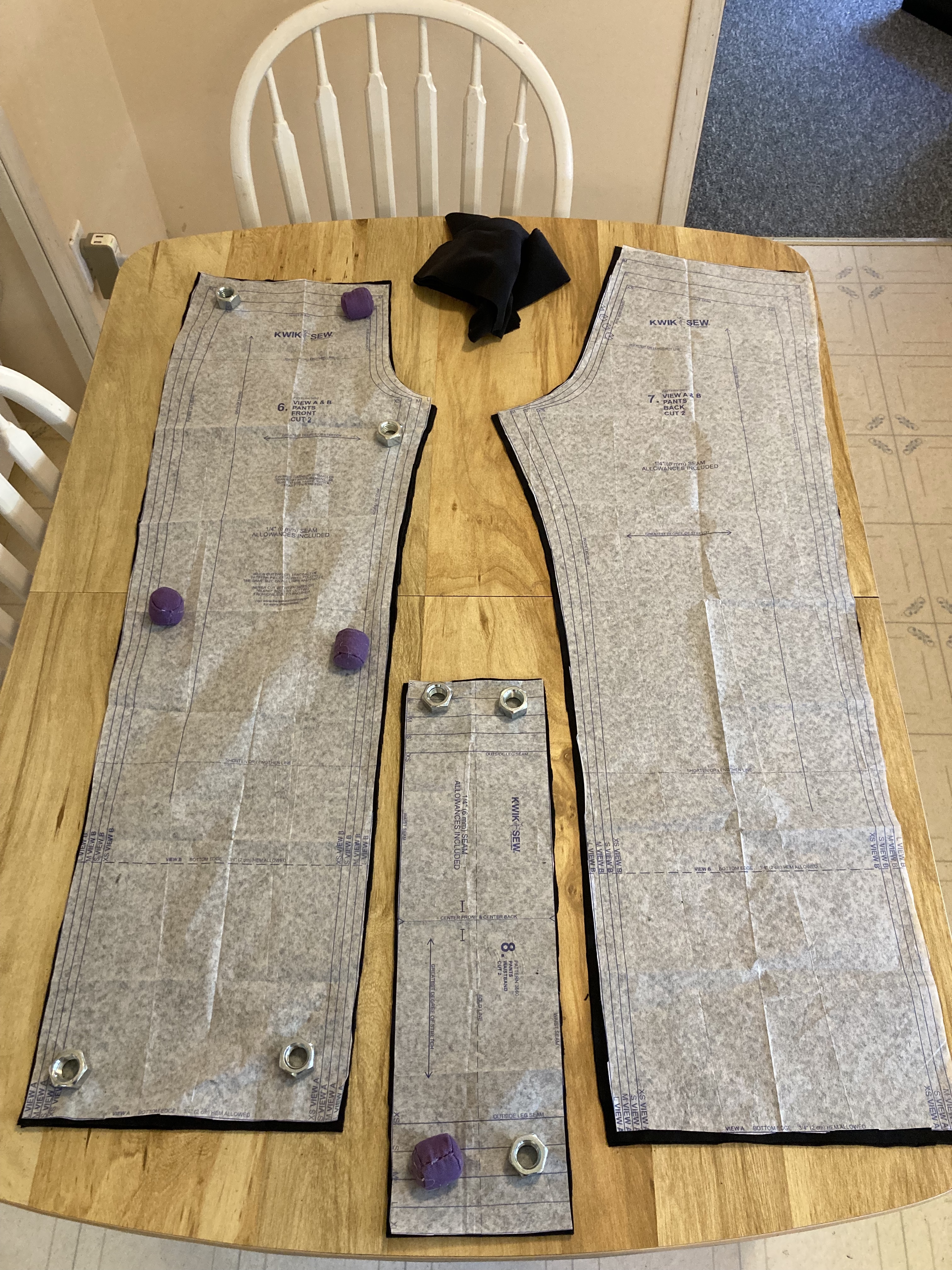 But my first garment to be sewn is a couple of pairs of black yoga pants to replace my worn ones in this photo.