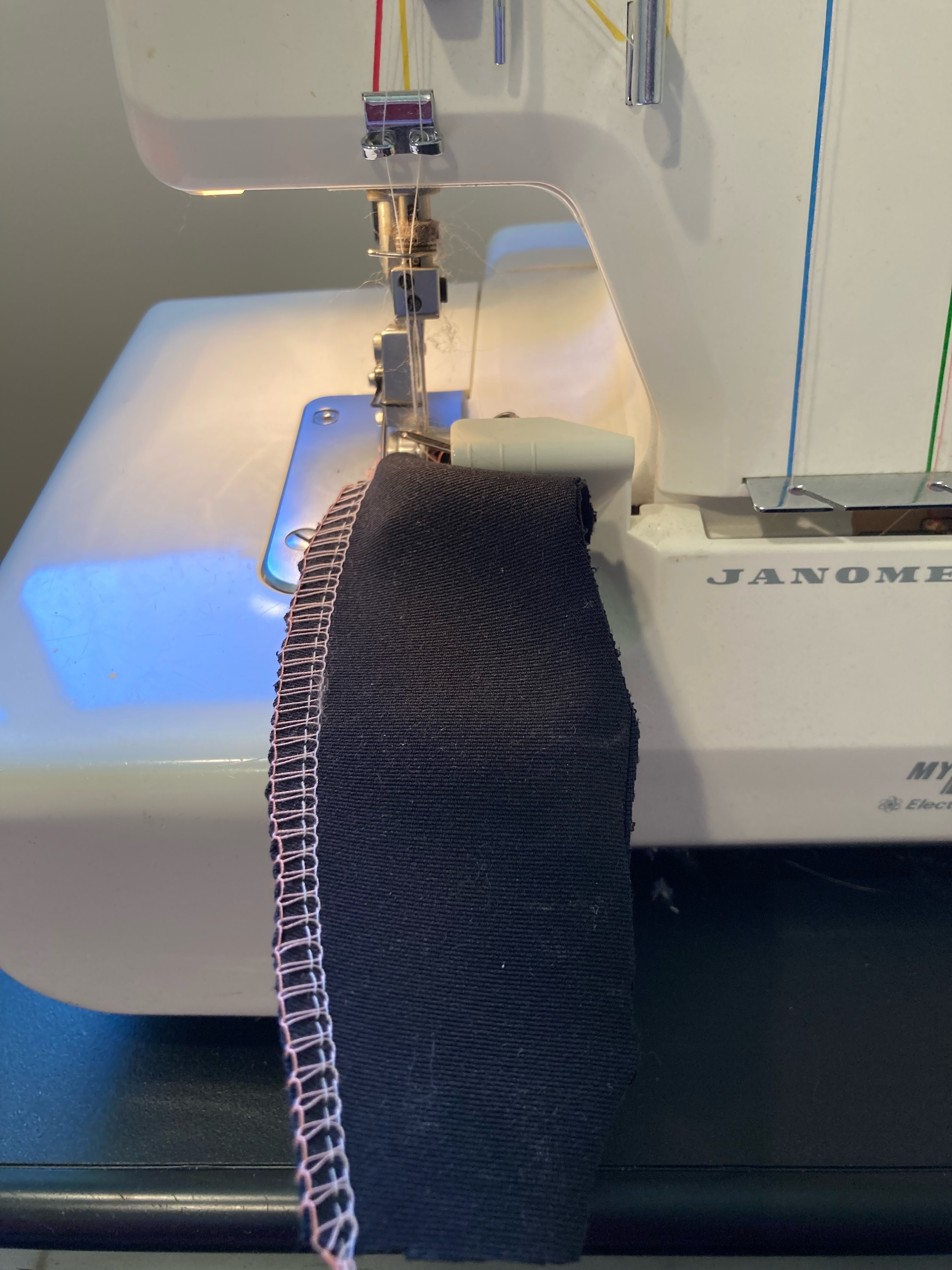 Now just to be on the safe side, since I had to pull my serger, a Janome MyLock 334, out from under its dust cover, after a thorough cleaning, I tested the stitch. The result didn’t look too bad!
