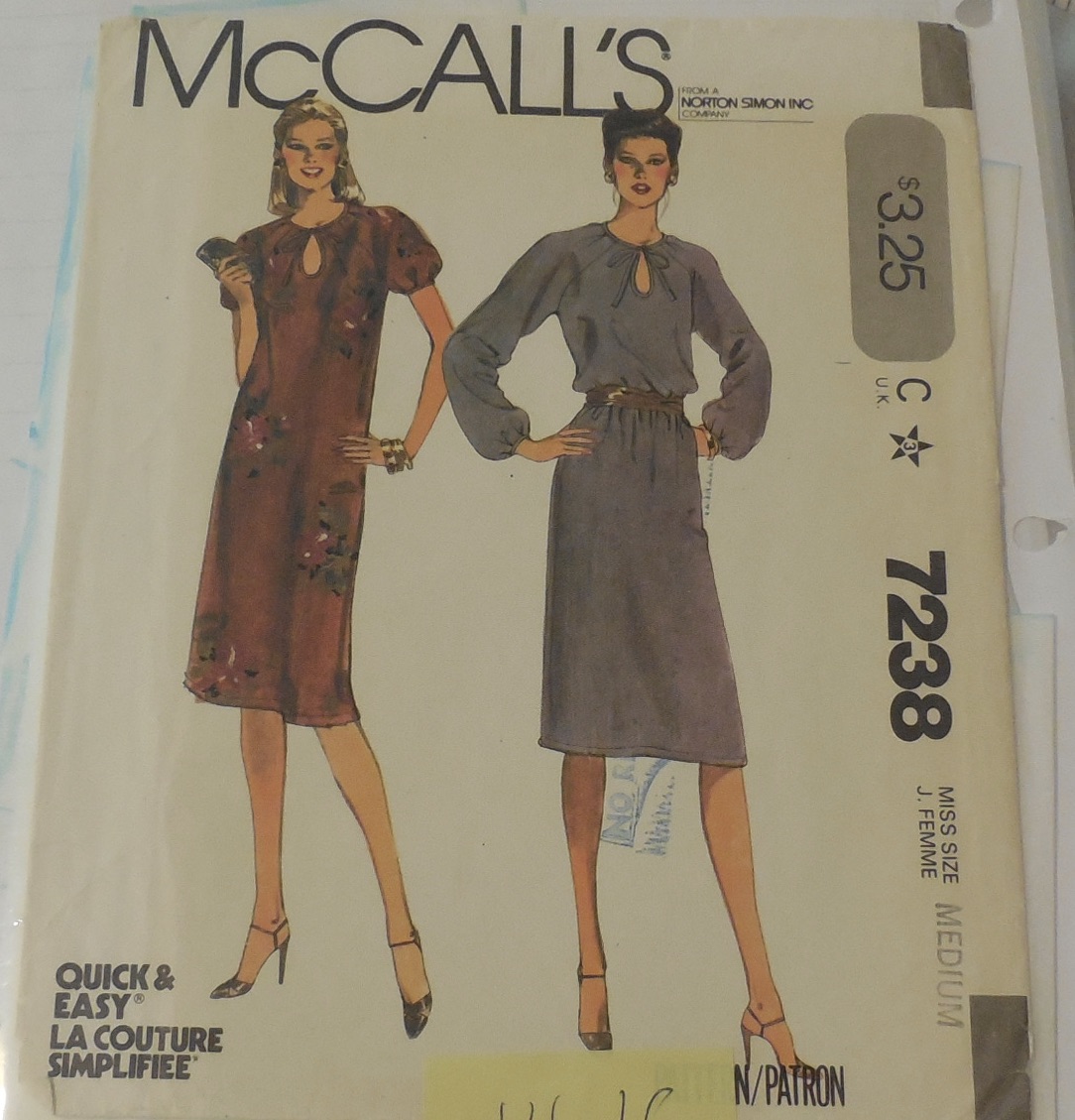I could not find any paisley fabric, but I did find this fabric in my stash, a soft flowing polyester, and my sister gave me this pattern, McCall’s 7238 from about 1980 vintage. The combo was perfect! I’d just have to make it top length, instead of dress length.