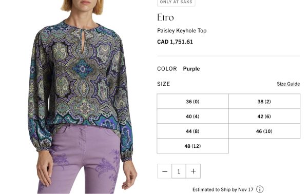 Anyway 🙂 I decided to make my own version of this top by Etro, a paisley Keyhole Top, $1,751.61 CAN. Well I’m not spending that much on a top so #whybuywhenyoucanmakeityourself !