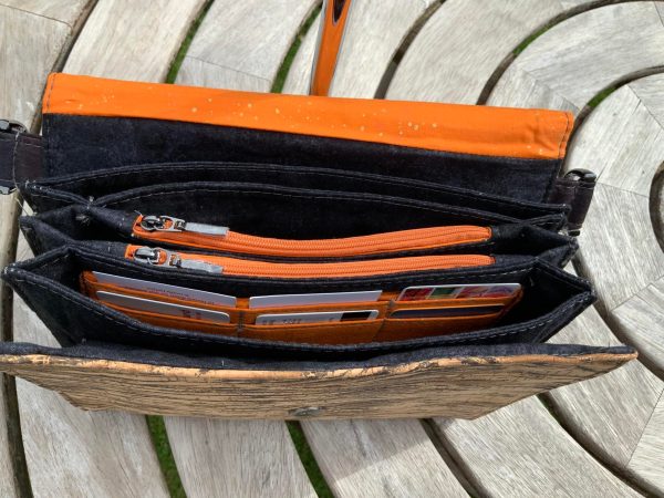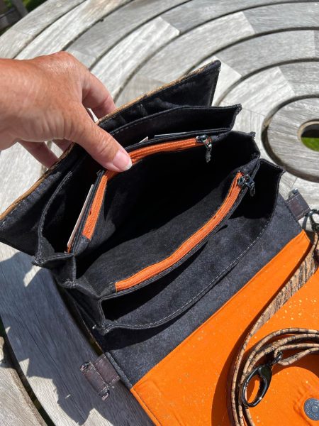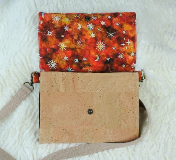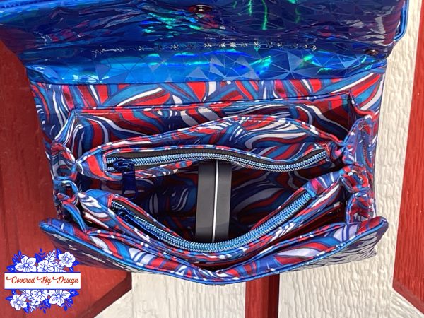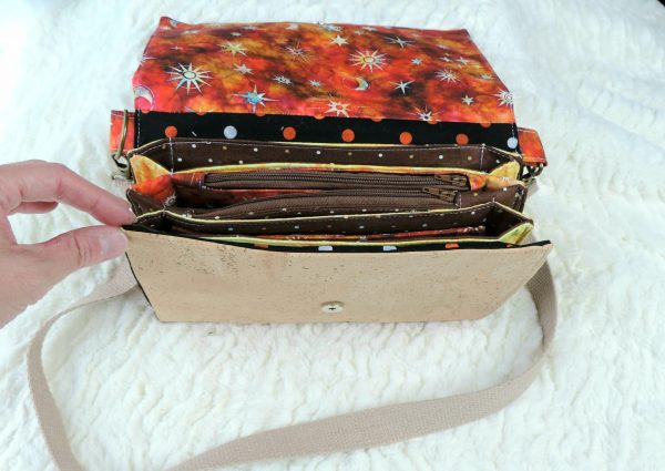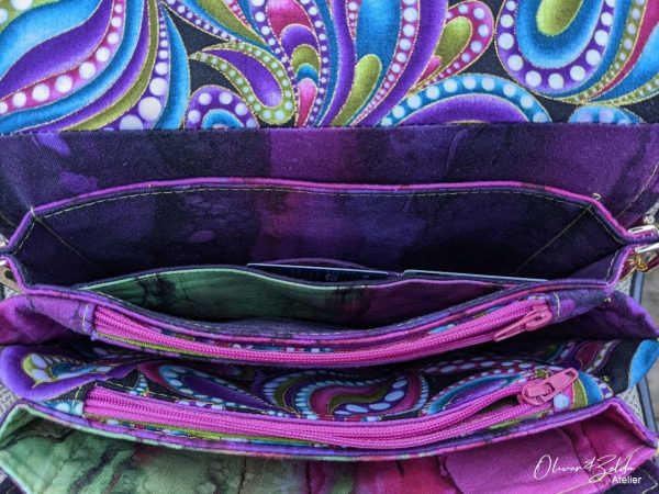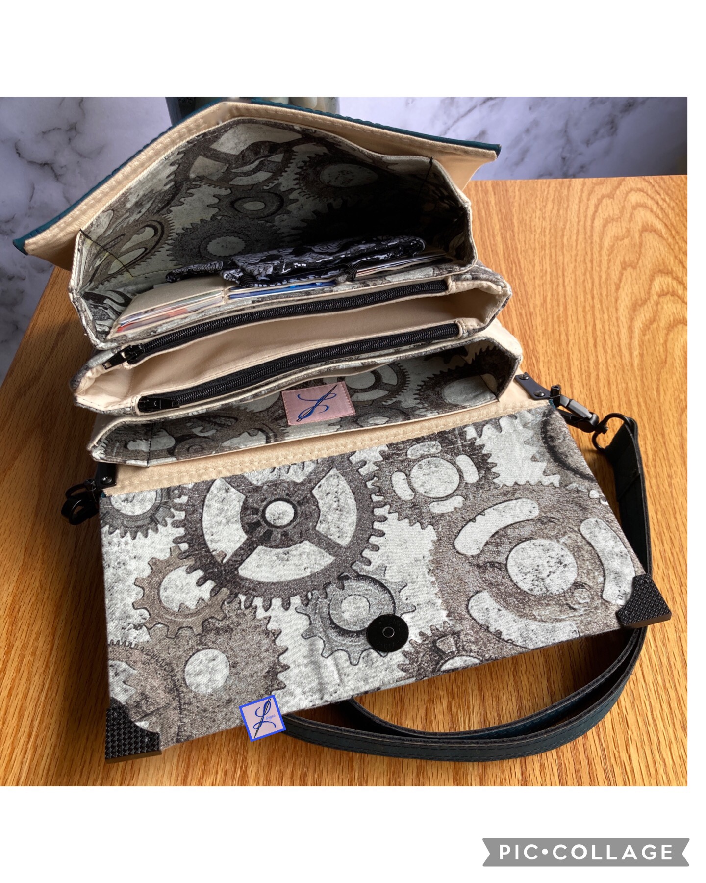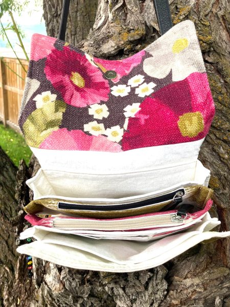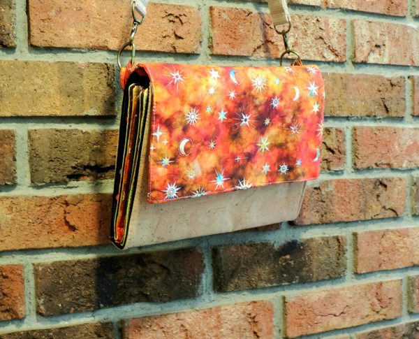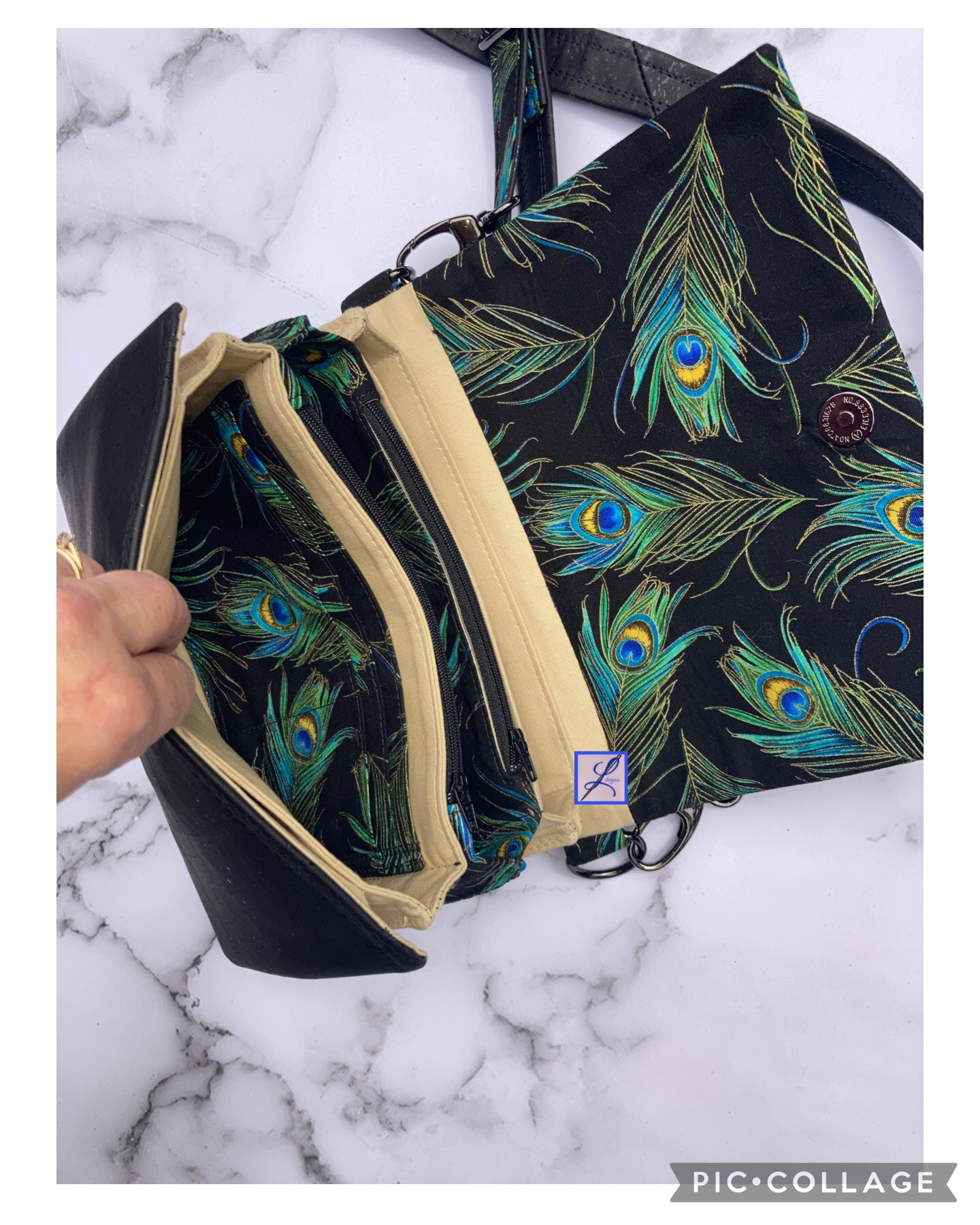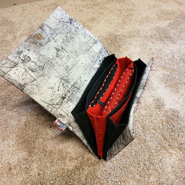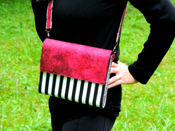 The Zsa Zsa is a PDF sewing pattern and will give you a Clutch with an approximate size of 9 1/2” wide x 8” tall x 1 1/2” deep (24 cm x 20 cm x 4 cm). The Zsa Zsa is a fully lined Clutch with THREE compartments, TWO zipper pockets, TWO card slot holders for 12 cards total and SIX slip pockets. You can design your Zsa Zsa with different Accent materials for the front flap, the two tone adjustable strap or some of the pockets, compartments, or the card slot holders inside!