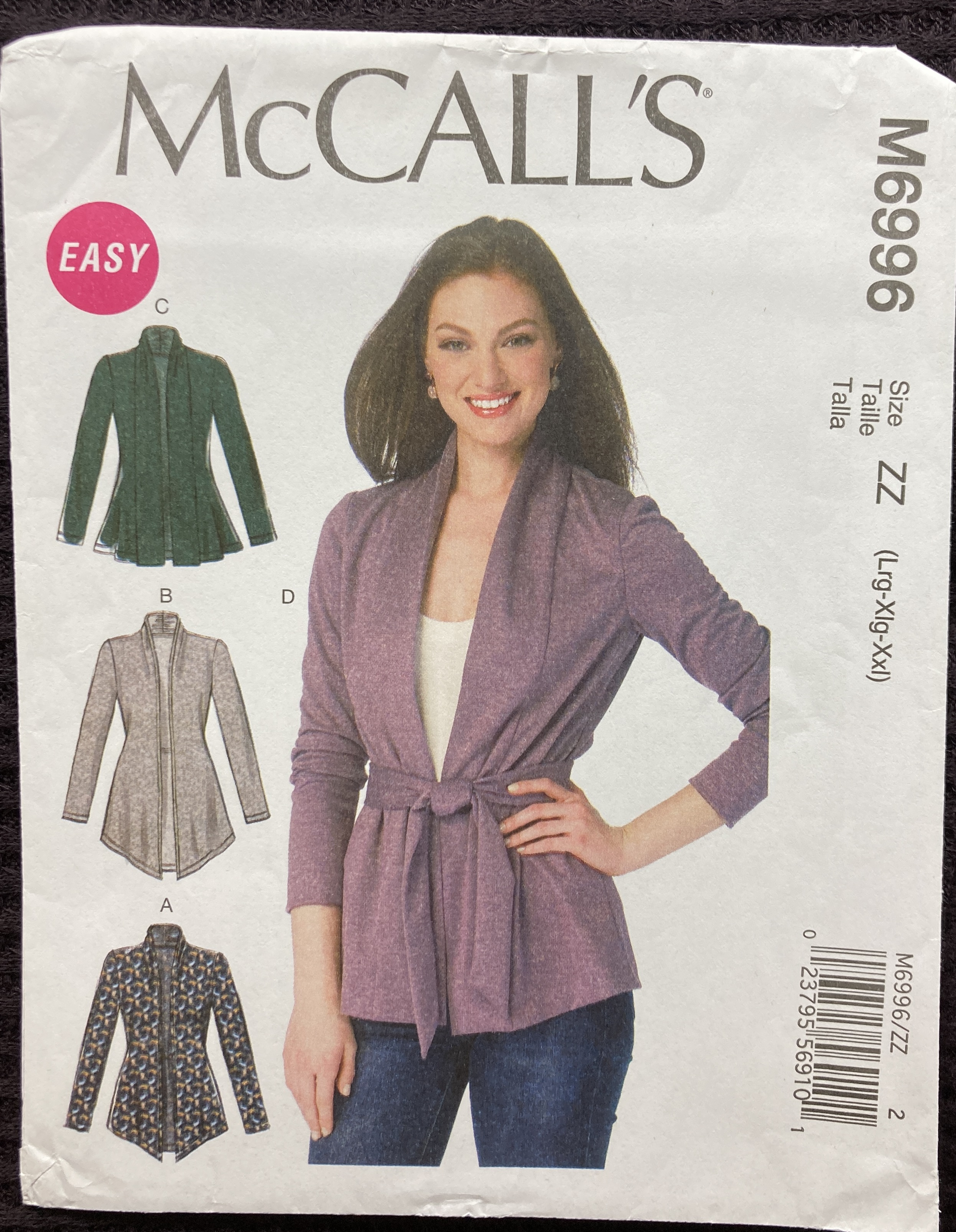 Last, my favourite casual cardigan, McCalls M6996, and a wonderful waffle knit, again from Our Social Fabric. It almost looks and feels like real knitting! Again, I used binding on the SA’s. 🤣