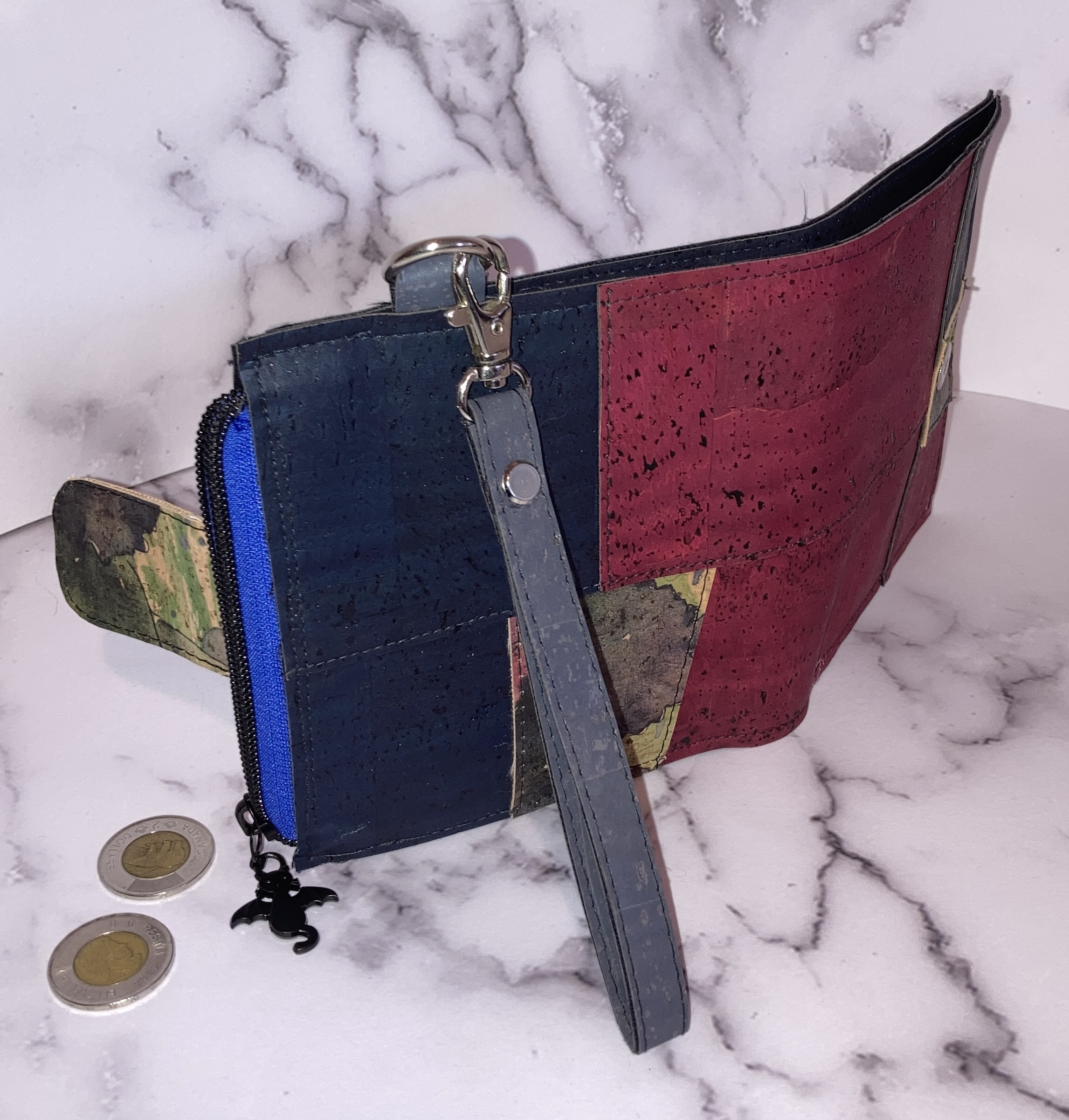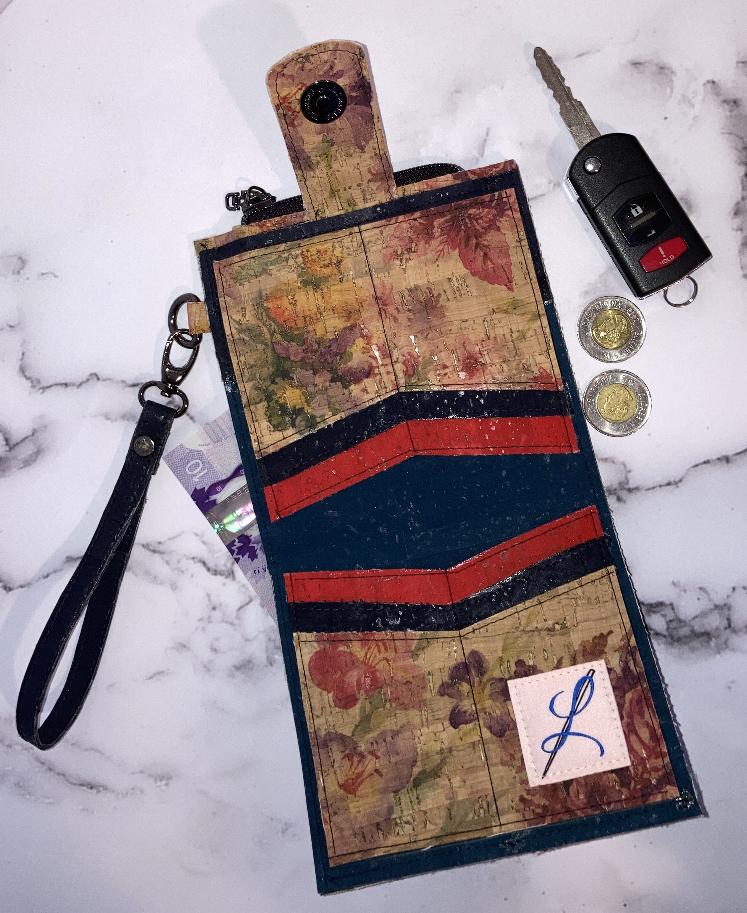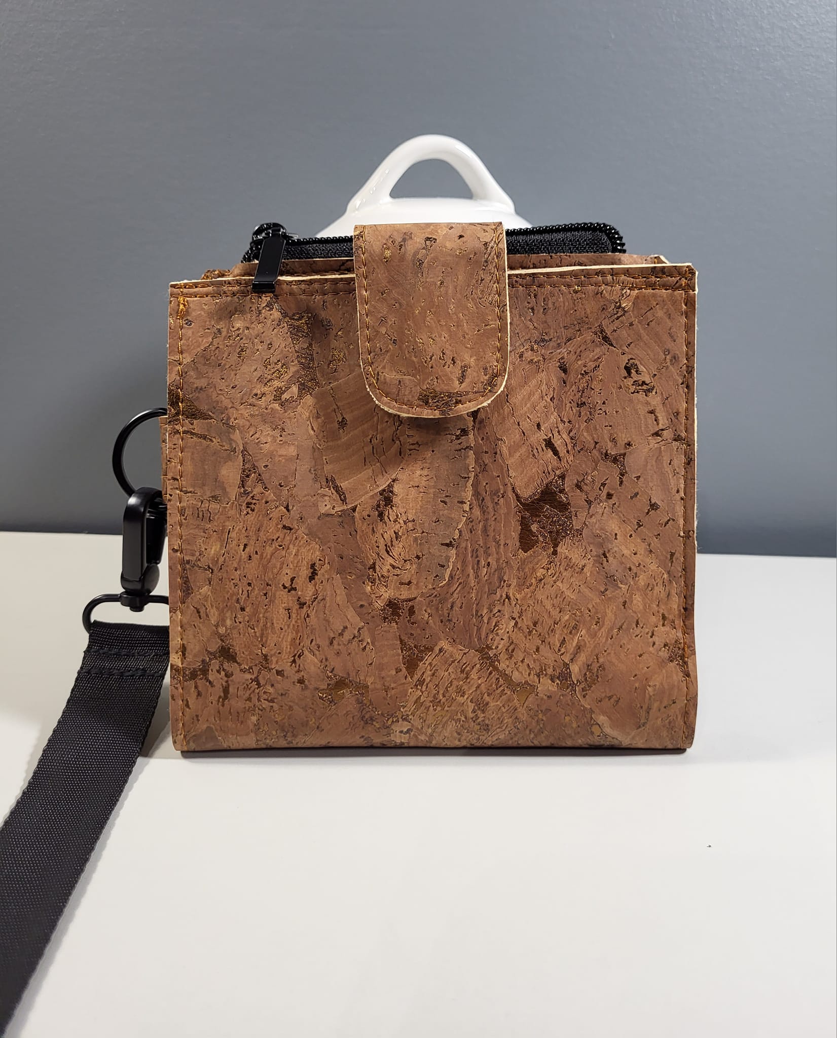 My challenge to myself in making this pattern was to make something small that could still hold A LOT, and of course, I had a small tub of scrap vinyl and cork that I wanted to dip into! So… this pattern has instructions included to accent the parts you wish, or even make it a Patchwork Espresso using up all your SCRAPS!