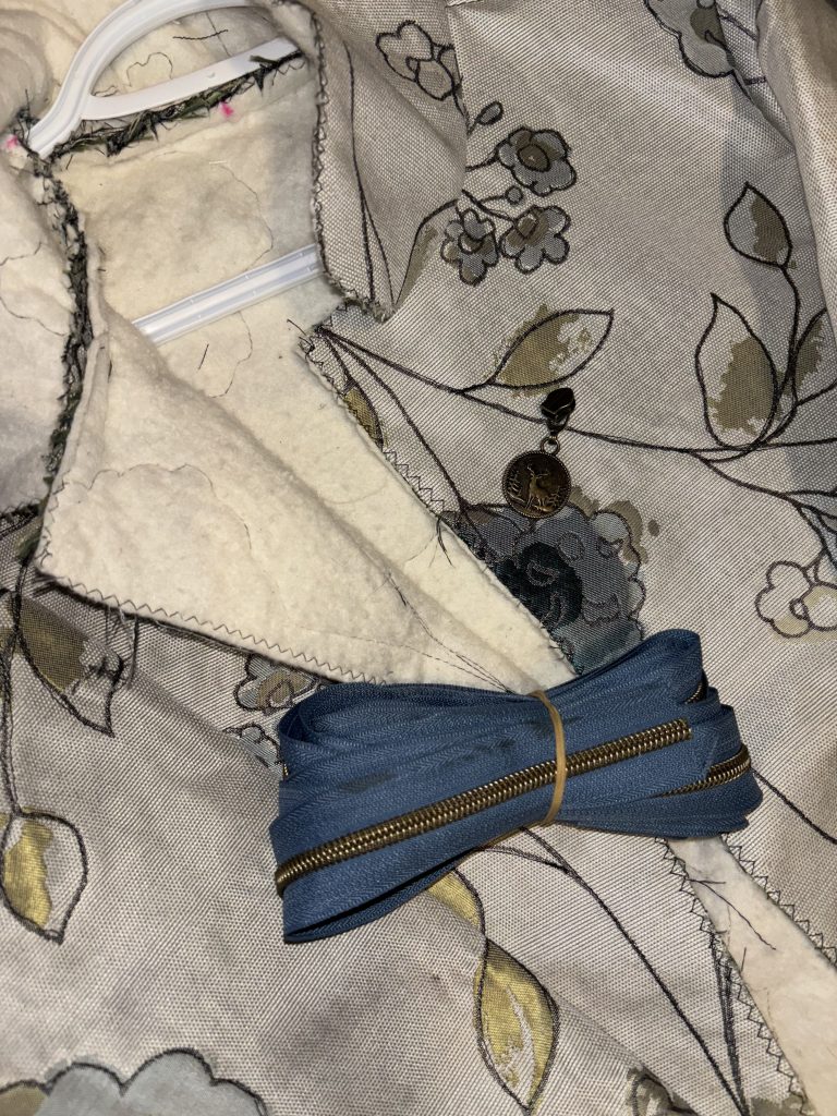 I am used to turning out bags through a small hole when I sew them, so it was quite funny to turn this jacket right side out through the large opening where the zipper was to be sewn on!