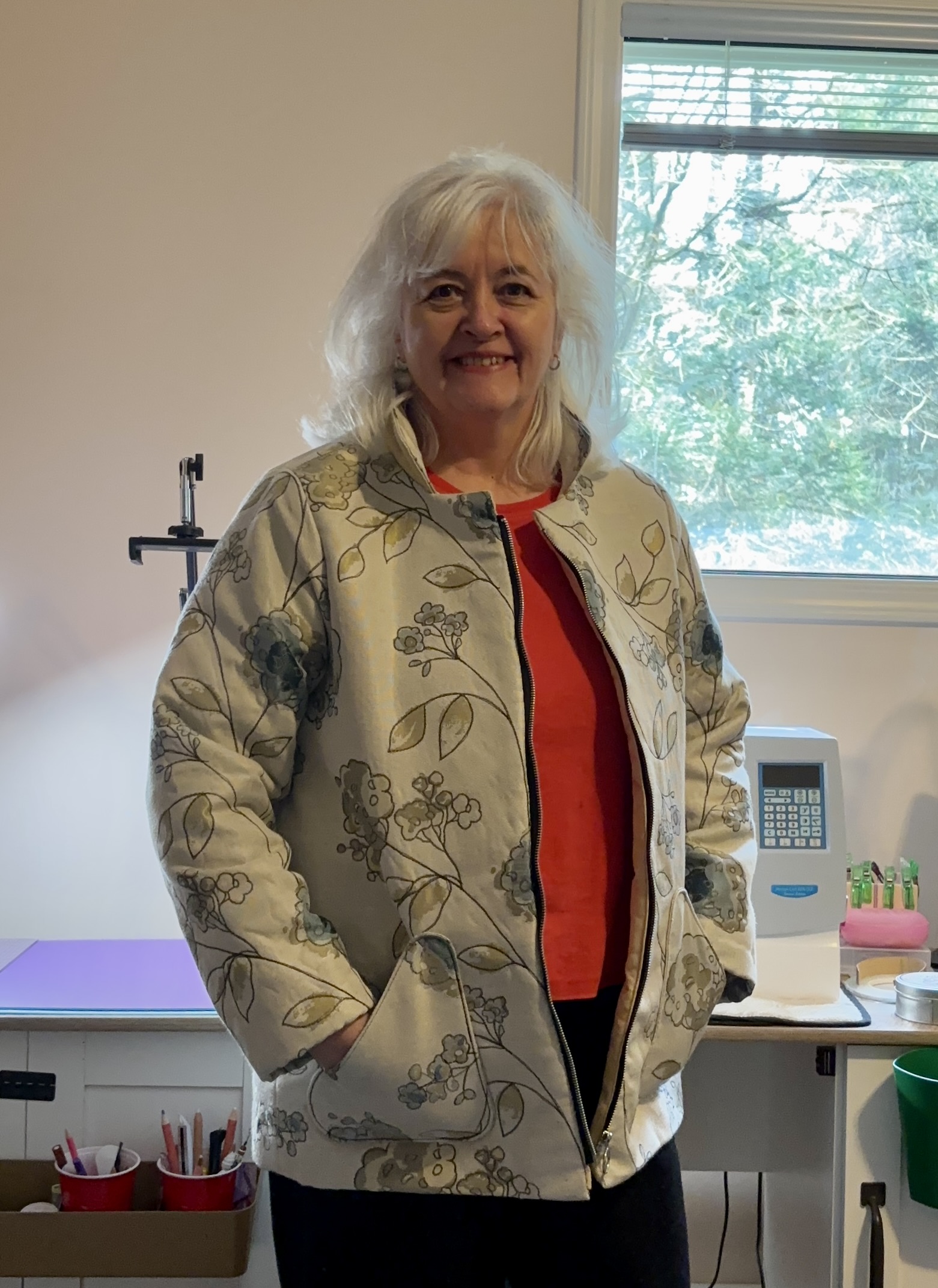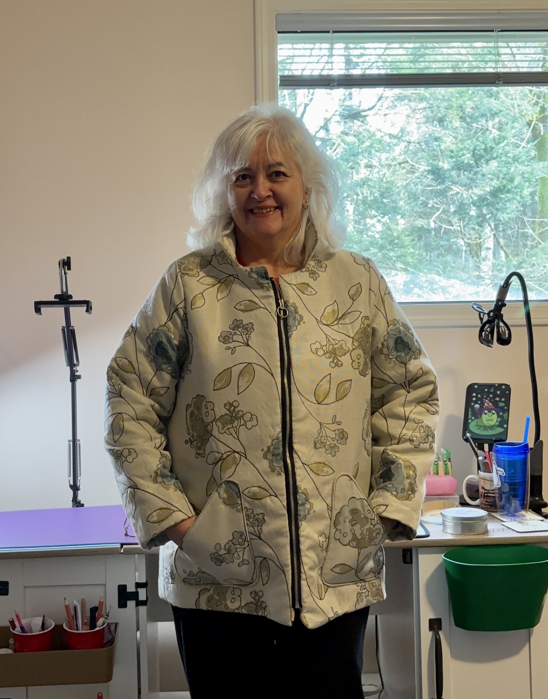 Final photos! I’m very happy with my quilted jacket. I am amazed at how warm and thick it is – just like wearing a quilt!